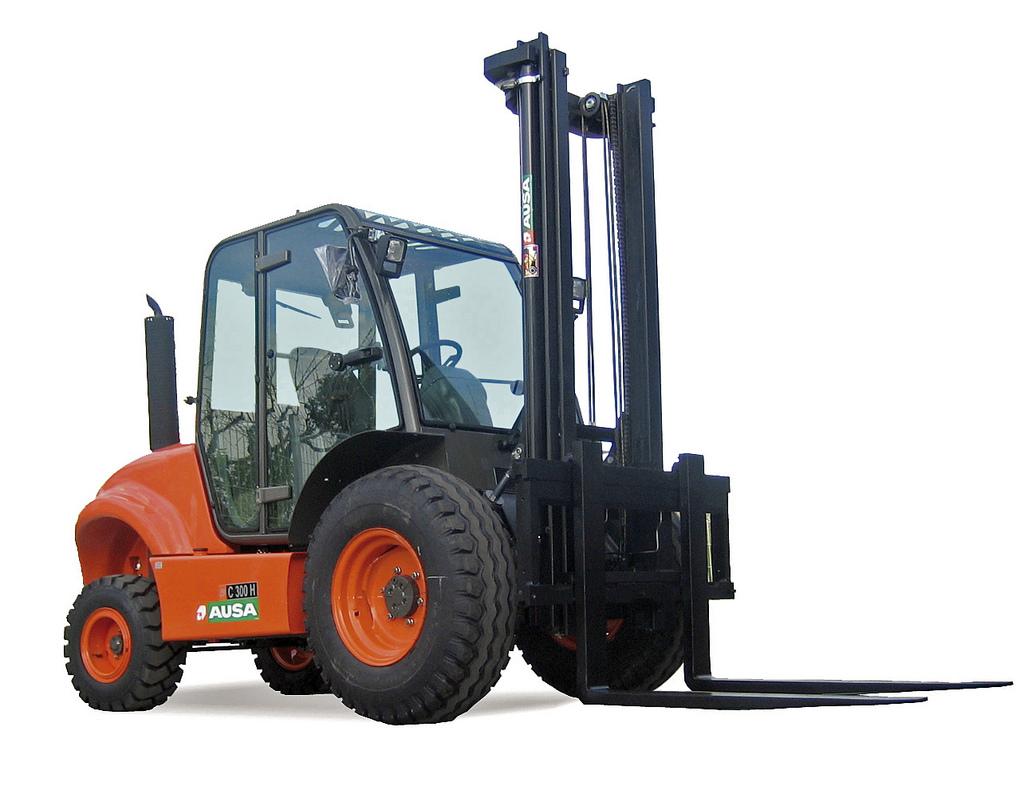 Вилочный внедорожный погрузчик AUSA С 300Н грузоподъемностью 3,0 т идеально подходит для работы с грузами на пересечённой местности и в узких местах. Уникальная разработка Ауса лёгкого, компактного, манёвренного и безопасного вилочного погрузчика повышенной проходимости. Просторная, полностью закрытая кабина с отопителем и эргономичность обеспечивают минимальную утомляемость оператора и полную безопасность работы. Откидная кабина позволяет легко проводить текущее обслуживание.