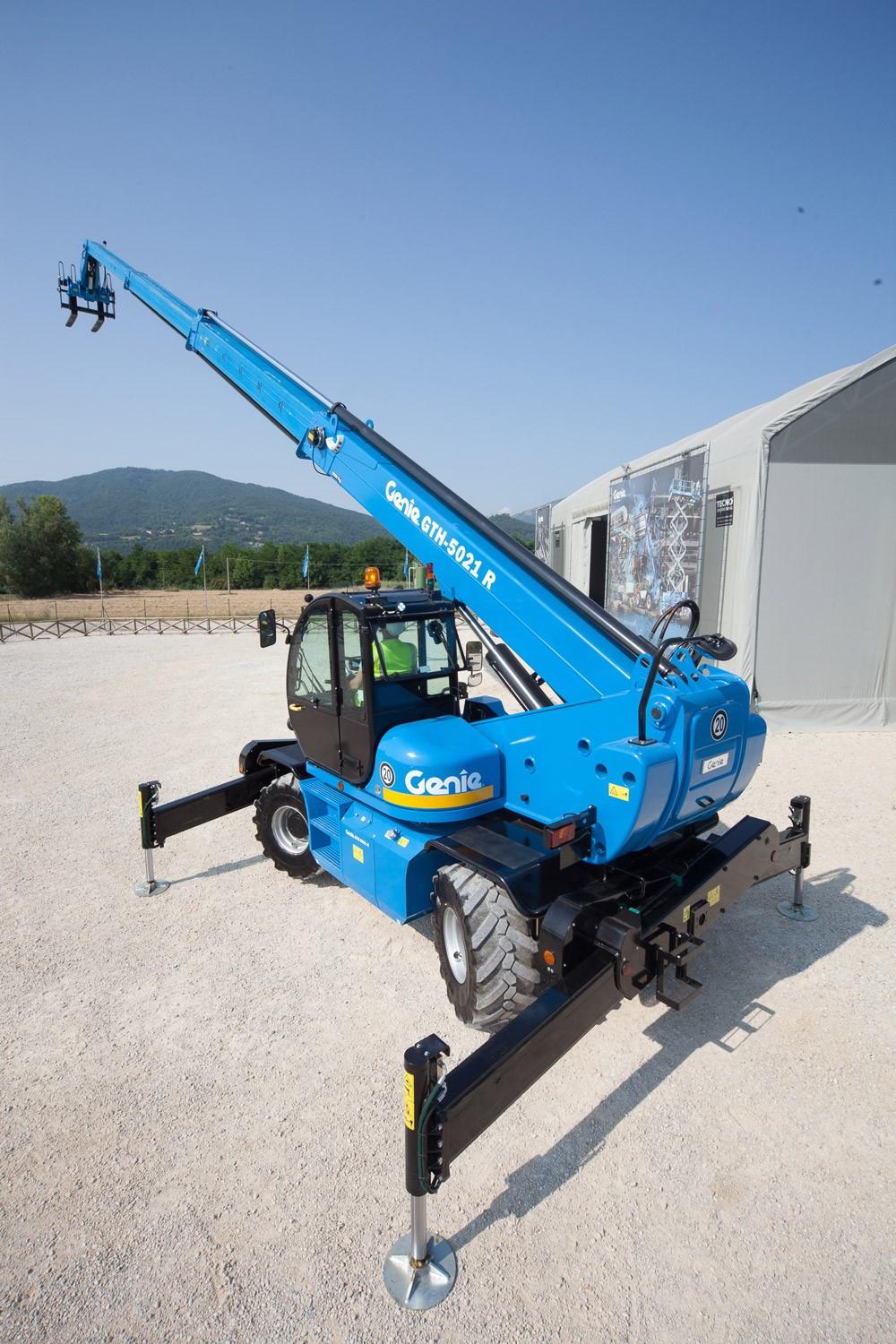Телескопические погрузчики с поворотной платформой Genie GTH 5021R предназначены для выполнения строительно-монтажных работ, а также могут оснащаться подъемными платформами и использоваться в качестве подъемника. Новесное оборудование позволяет использовать также телескопические погрузчики с поворотной башней Genie в качестве крана
