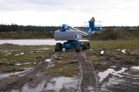 • 4-x гусеничная система ходовой части работает совместно с активной качающейся осью Genie, которая с помощью датчиков отслеживает поверхность и регулирует положение оси в соответствии с характером грунта, и приводом с положительным тяговым усилием, который обеспечивает равное тяговое усилие на всех гусеницах, даже если одна гусеница теряет сцепление.